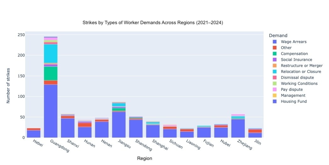 Intensifying labor protest is a factor in this relocation, alongside rising wages: faced with worker mobilization, capital is moving production to new locations in order to increase profitability. At the same time, job losses as a result of relocations also mean that the strikes of 2021–2024 were defensive in nature, mainly fought over wage delays and relocations: a gesture of despair rather than an expression of political power.